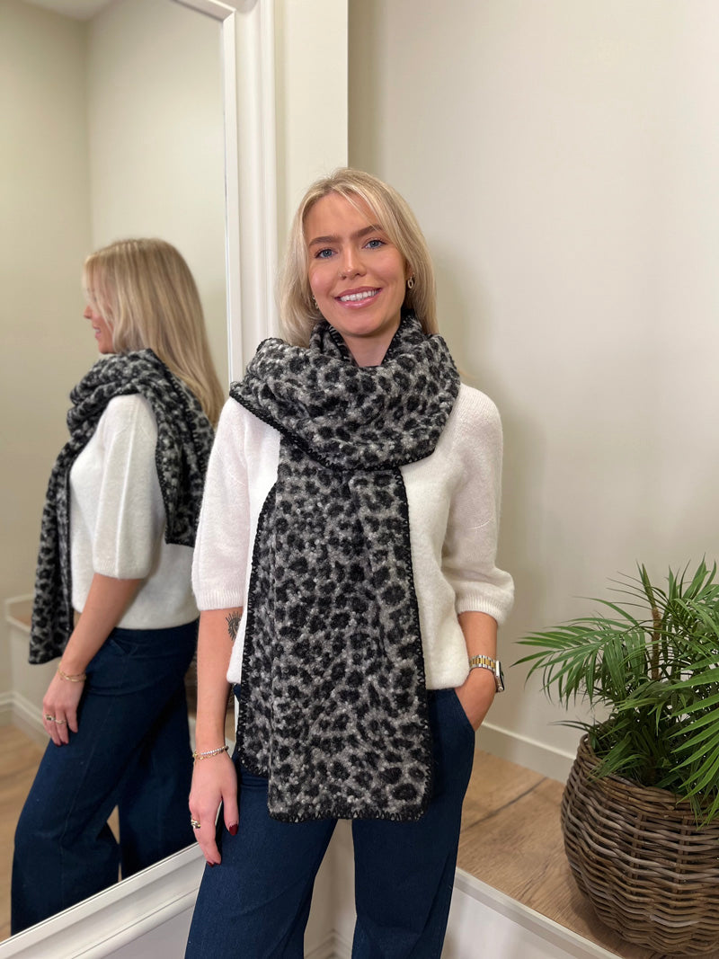 Animal Print Boucle Scarf Grey