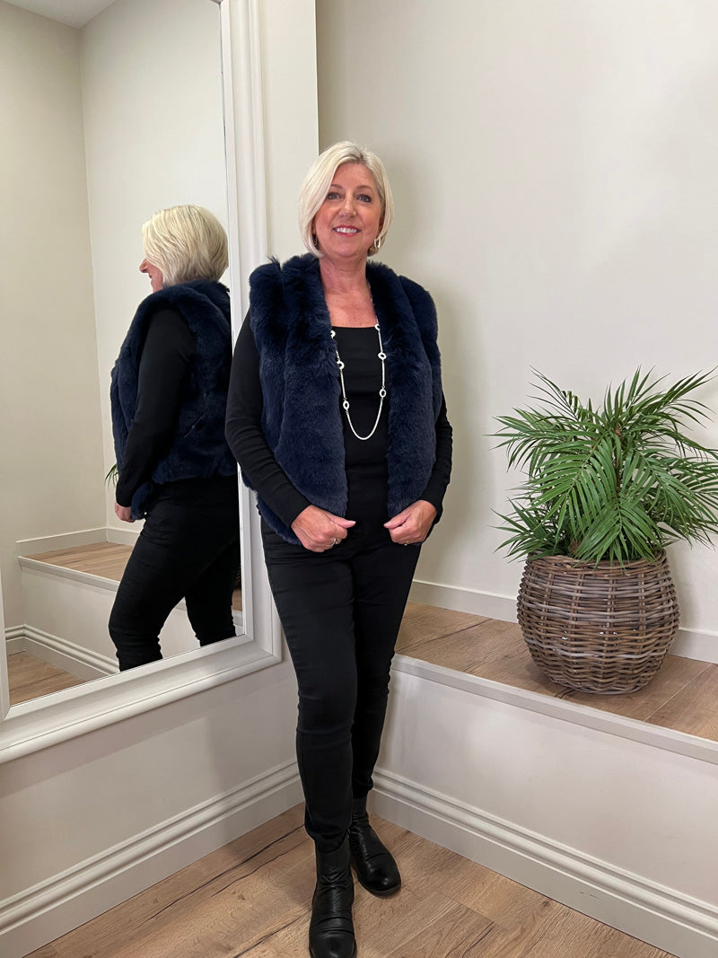 Ruby Faux Fur Gilet Navy M/L