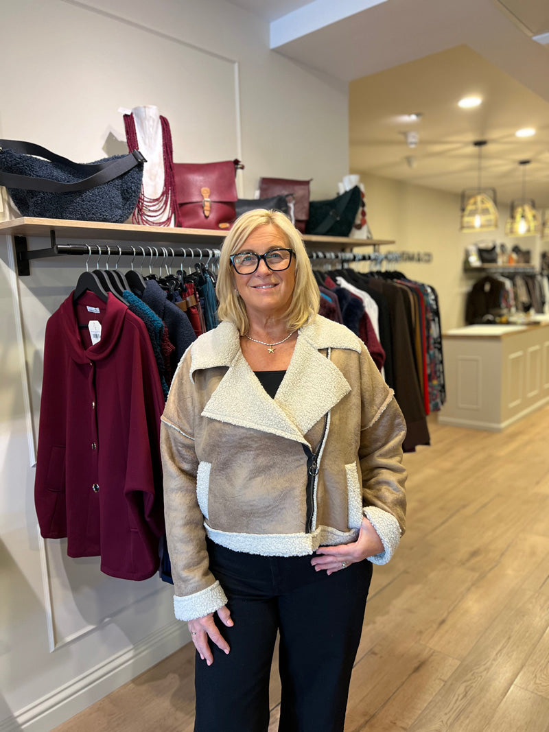 This sophisticated faux shearling crop biker jacket features a chic camel coloured faux leather outer paired with a luxuriously soft faux sheepskin inner. The cream and camel tones create a refined look, perfect for adding effortless style and cozy warmth to any ensemble. Ideal for layering, it balances contemporary trends with timeless comfort.