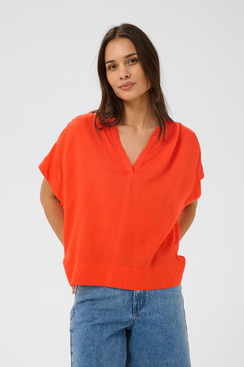 KAFFE KAtine Amber Blouse-Poppy Red/Chalk