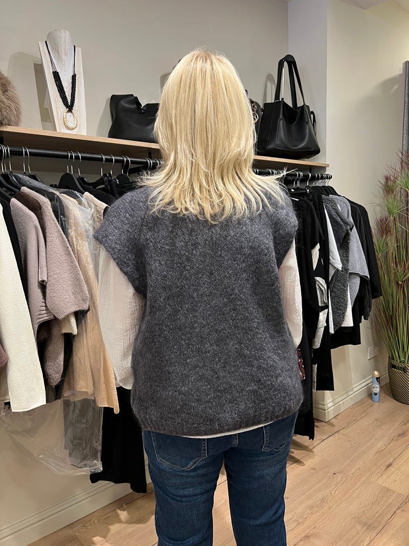 Elevate your layering with the Cora mohair waistcoat in mid grey, crafted from a luxuriously soft blend featuring 40% mohair. This elegant piece adds refined texture and warmth, making it an ideal complement to both tailored skirts and casual ensembles. Its sleek silhouette ensures effortless style and versatility for any occasion.