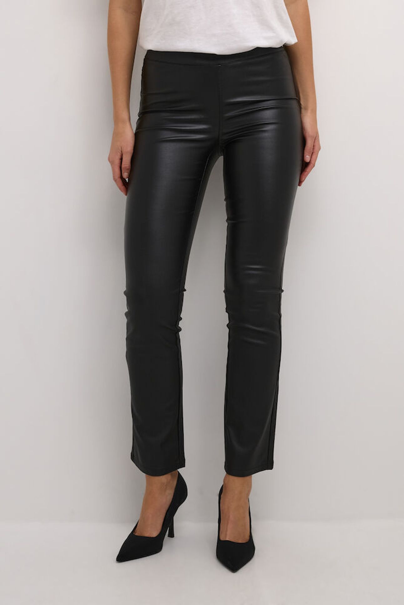 KAFFE KAada Faux Leather Trousers-Deep Black
